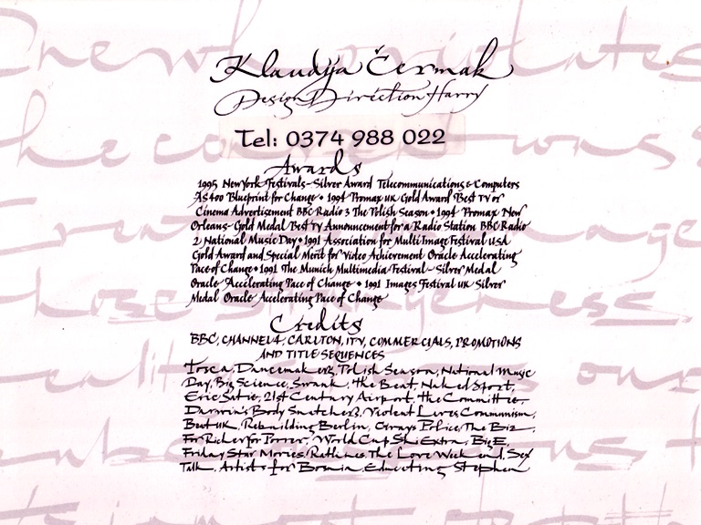 Throughout my career in Post-production and especially VFX Compositing I have always made a great effort to brand and sell myself and thus produced a number of business and promotional cards, some even A3 size, that reflected my skills at the time but also my creative state at the time.