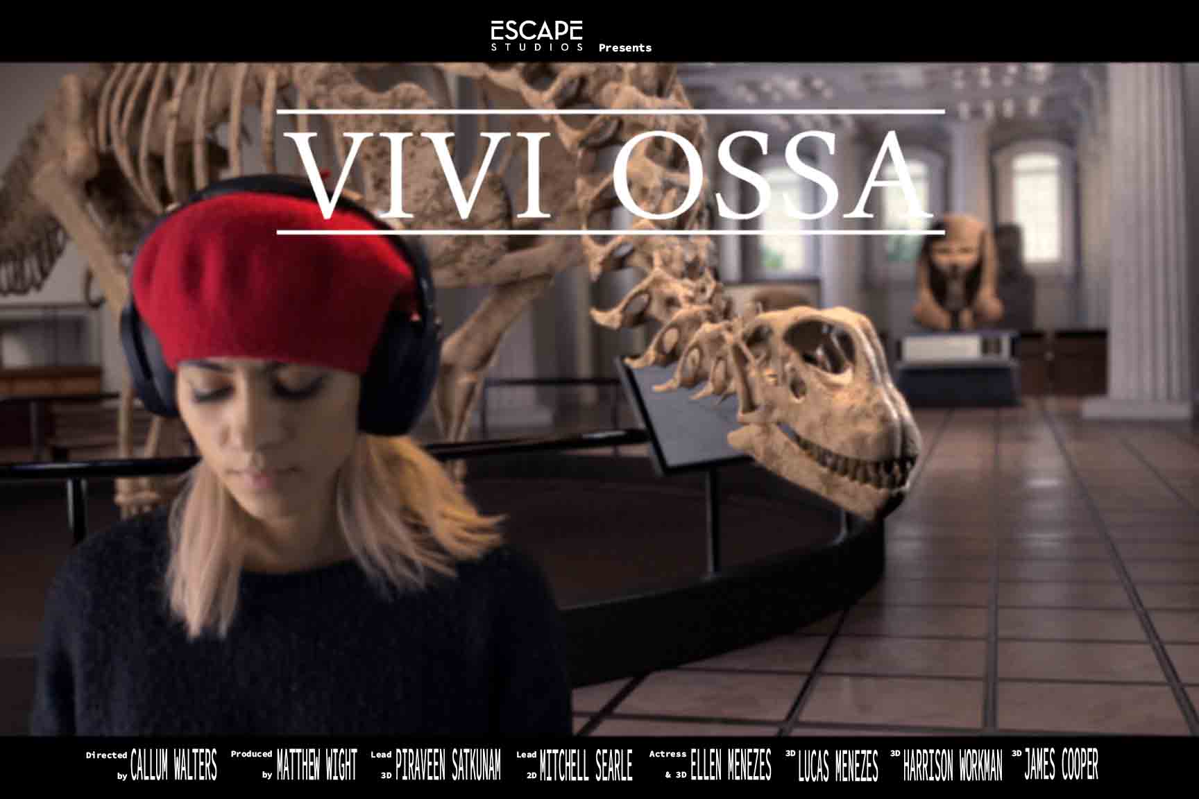Directed by Callum Walters and produced by Matthew Wight, Vivi Ossa (Latin for “living bones”) is a short VFX film about a museum visitor who brings ancient bones to life through the power of music. Piraveen Satkunam: was the 3D lead, and Mitchell Searle was the 2D lead.