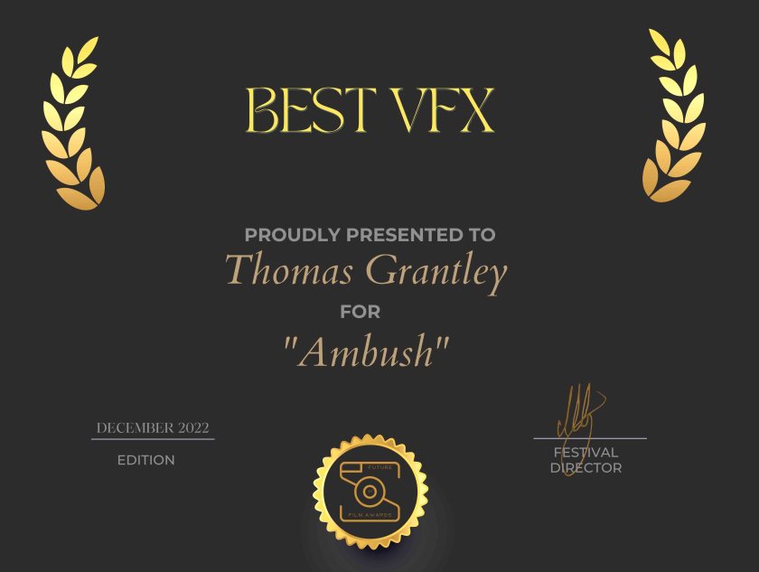 Congratulations to the makers of “Ambush“, which has won “Best VFX” at the Future of Film Awards.