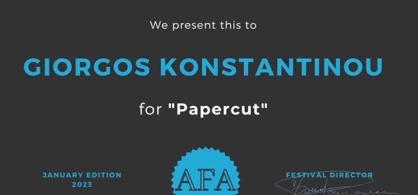 Many congratulations to makers of the VFX short film “Papercut“, which has won “Best VFX” at the Art Film Awards. Directed by Giorgos Konstantinou and produced by