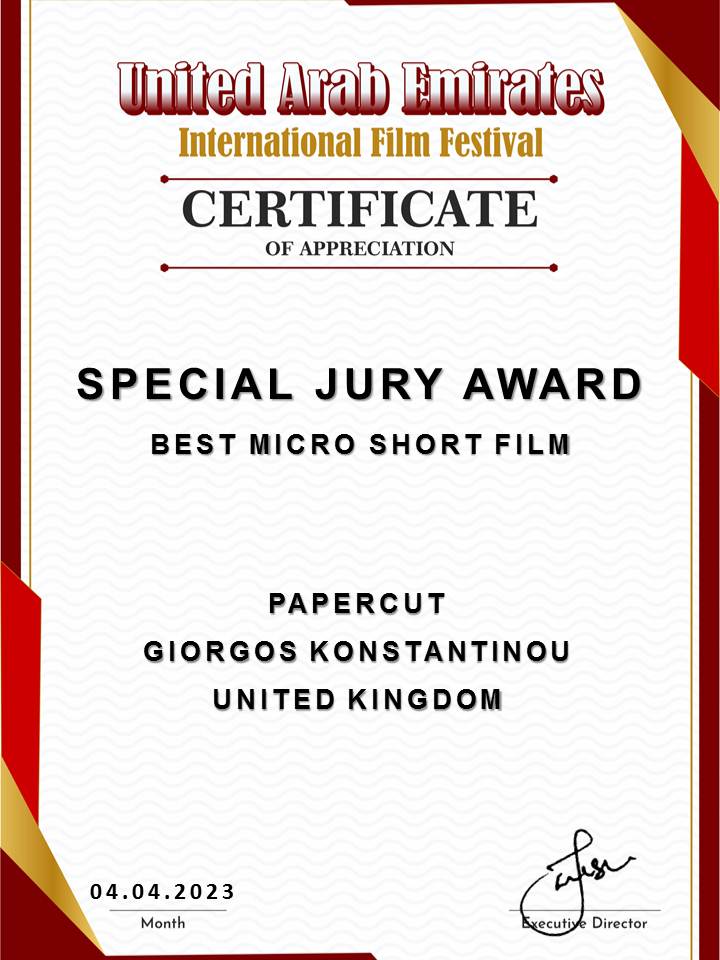 - Best Micro Short” at the United Arab Emirates International Film Festival