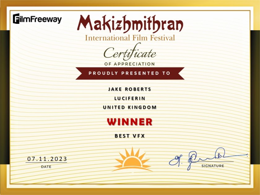 Congratulations to the makers of Luciferin, the VFX short created at Escape Studios by our graduating class of VFX artists, which has won “Best VFX” at the Makizhmithran Film Festival.