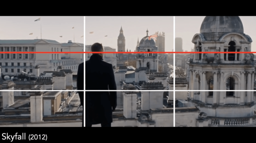 Imagine dividing your shot into a grid with evenly spaced lines both vertically and horizontally. The image below from Skyfall has the field grid overlayed.