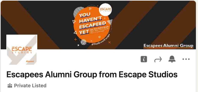 It’s time for all our Escapees to join the Escape Studios Alumni Group at Linkedin.