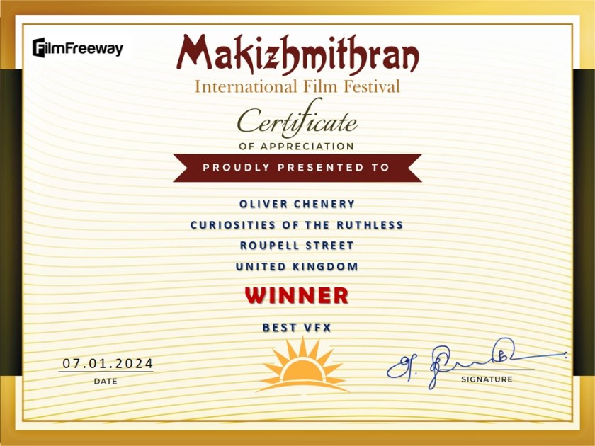 Congratulations to the makers of the short VFX film “Curiosities of The Ruthless Roupell St“, which has won “Best VFX” at the Makizhmithran Film Festival Awards.