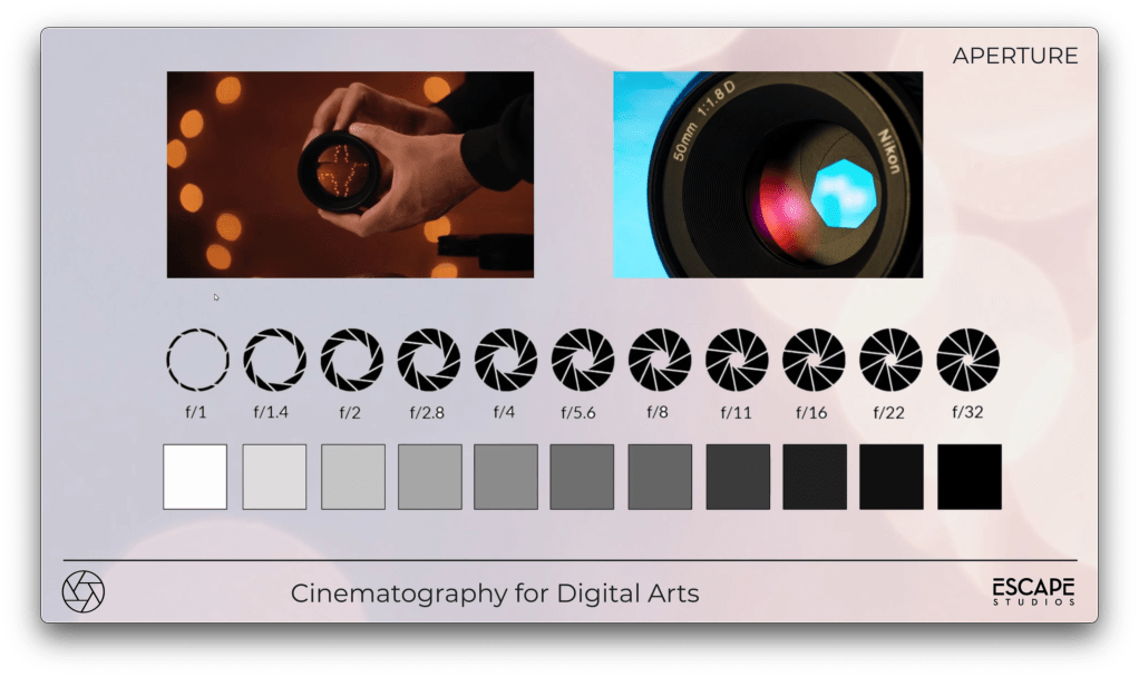 The Aperture is actually a series of blades inside the lens. It’s originally designed to control the amount of light which eventually reaches the sensor, just like the iris in our eyes. The wider the aperture, the higher the exposure, and vice versa. Aperture is expressed in ‘stops’ and the difference between 2 stops is twice the amount of light.