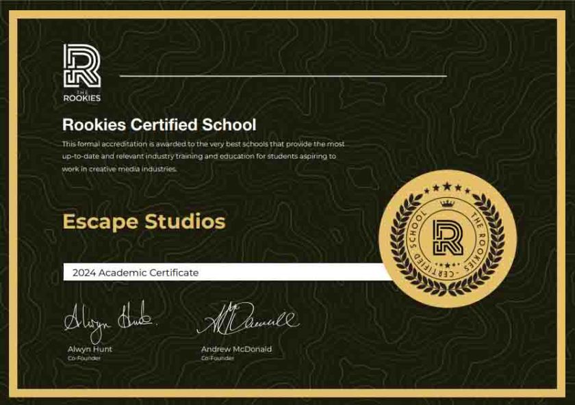 The Rookies, the international competition for aspiring VFX artists, has again ranked Escape Studios in the top creative schools internationally, awarding us a formal certification of excellence.