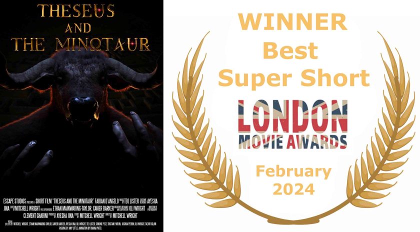 Congratulations to the makers of Theseus and The Minotaur, which has won “Best Super Short Film” at the London Movie Awards, held at the Close-Up Theatre in London’s Shoreditch.
