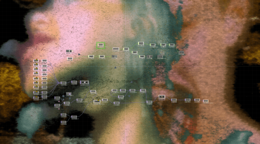 Touchdesigner allows a user to create very complicated setups that can be used as interactive exhibitions, or even live visuals at an event. By using sound, colour, or visual input, a unique visual output can be created.