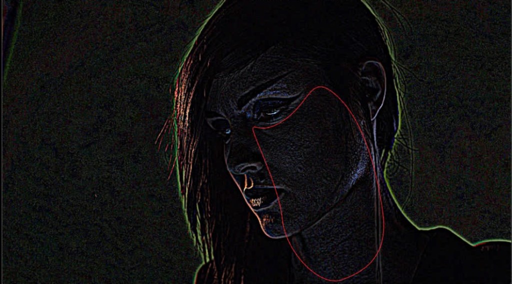 The high-frequency one, which contains only the fine details, like the pores or blemishes of the skin.
