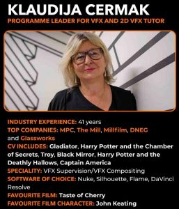 Klaudija Cermaka teaches the MA in the Art of Compositing for VFX at Escape Studios.