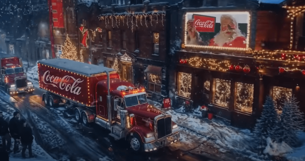 Front image from the Youtube Channel Zueda, who AI edited the Coca-Cola AI-Generated Christmas Ad. Brilliant.