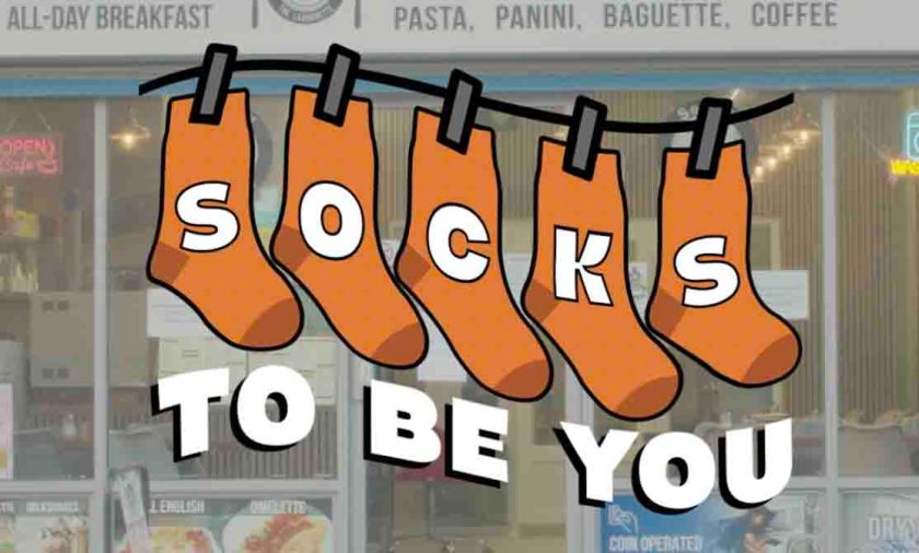 “Socks To Be You” tells the story of what goes on in the launderette after the customers have left.