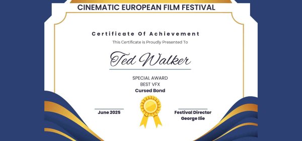 Congratulations to the makers of “Cursed Bond“, which has won “Best VFX” at the Cinematic European Film Festival. “Cursed Bond“ was written and directed by Ted Walker,