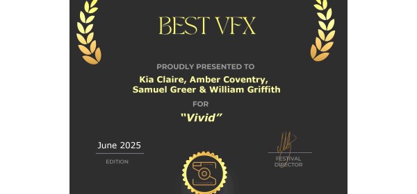 Congratulations to the makers of the short film “Vivid” which has won an award for “Best VFX” at the Future of Film Awards. “Vivid“ was created