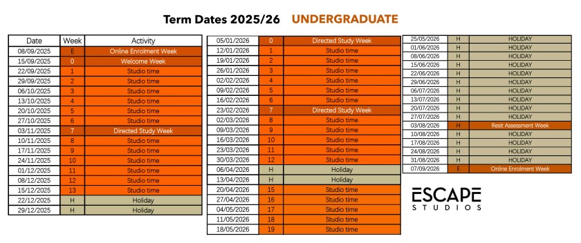 To see what’s in the 1st, 2nd, 3rd and 4th year at Escape Studios, follow these links: