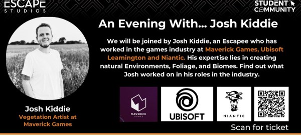 We’re delighted to announce our next “Evening With” Event on Wednesday 3 December 2025 at 5.30pm. Escapee and games artist Josh Kiddie returns to Escape