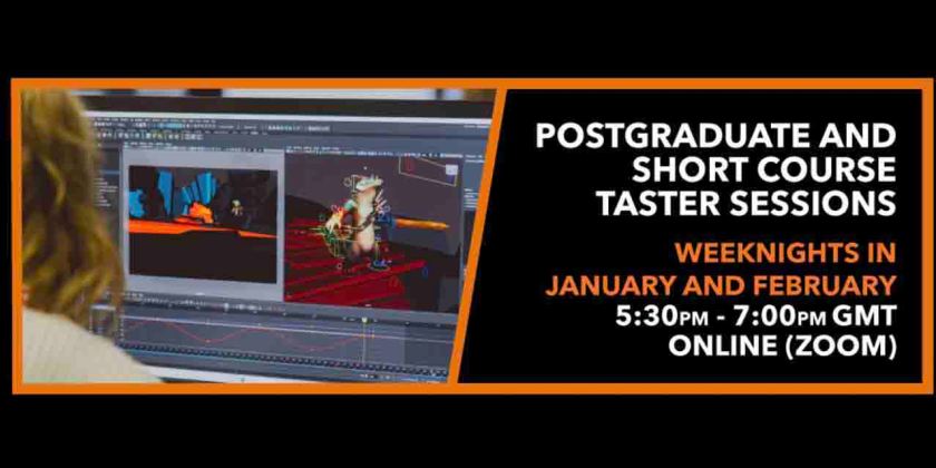 Join us on weeknights in January and February for our next Short Course and Post-Graduate Taster Sessions at Escape Studios, hosted online via Zoom.