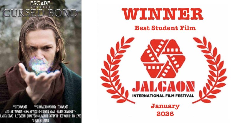 “Cursed Bond“ was written and directed by Ted Walker, and produced by Mahak Chowdhary. Cinematography was by Irene Gomez Emilsson and the VFX Supervisor was Oliver Eveson. Art direction was by Quimey Dasso. Ted Walker stars as the Hermit. This is the latest of many festival awards.
