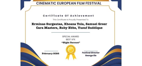 Congratulations to the makers of the VFX short film “Night Terrors“, which has won “Best VFX” at the Cinematic European Film Festival (CEFF). Directed by Erminas