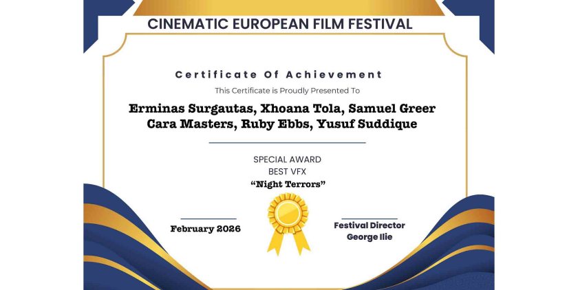 Congratulations to the makers of the VFX short film “Night Terrors“, which has won “Best VFX” at the Cinematic European Film Festival (CEFF).