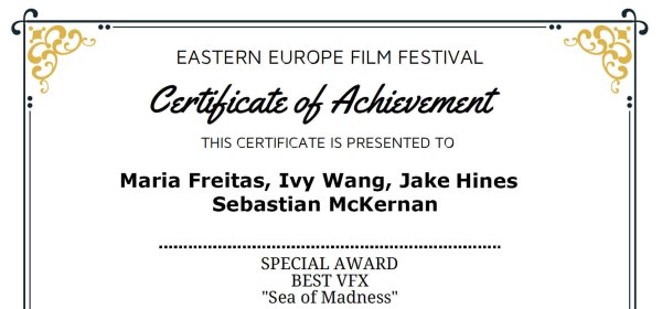 Congratulations to the makers of Sea Of Madness, which has won a “Special Award” for “Best VFX” at the Eastern Europe Film Festival Awards. Sea